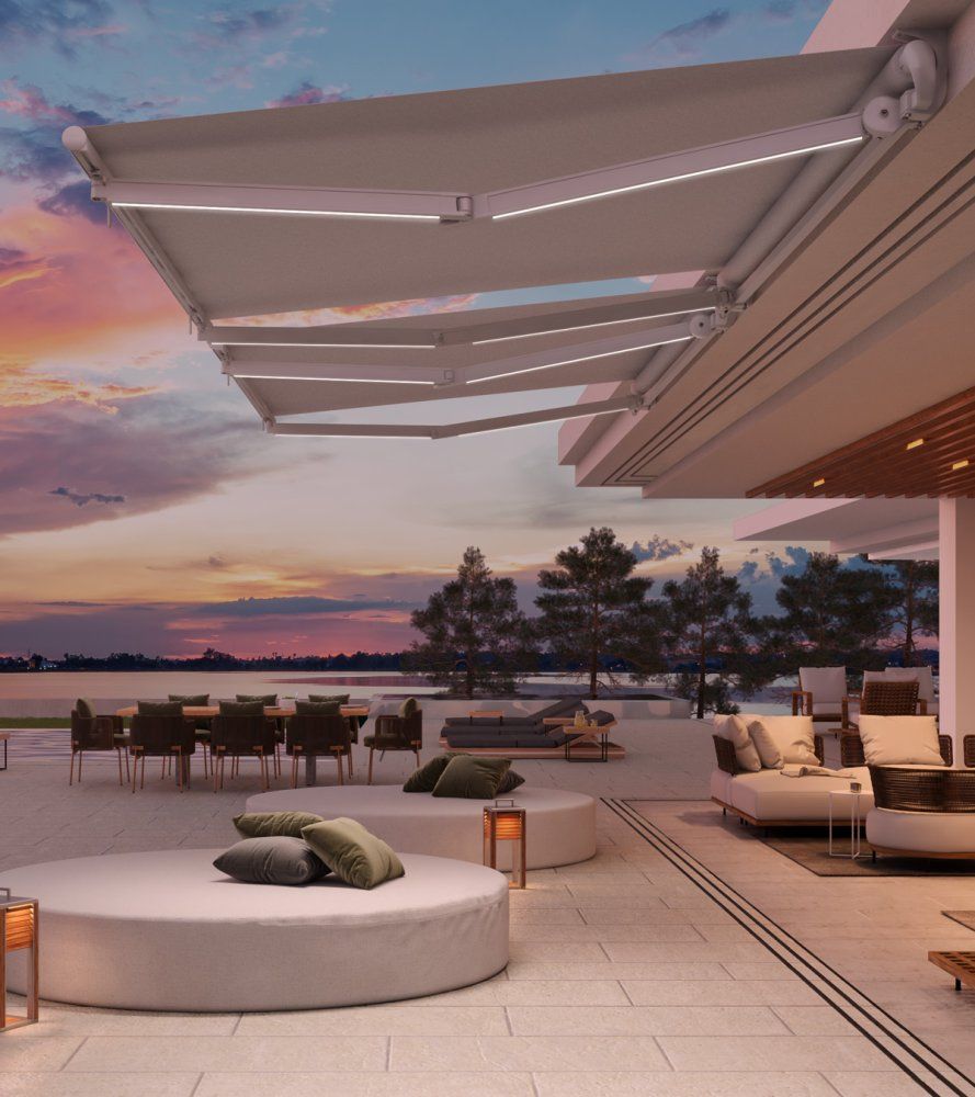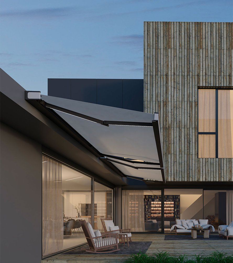 Le tende da sole si reinventano con stile! Qubica PLUMB si distingue per il suo sviluppo verticale, il design compatto e le numerose possibilità di personalizzazione. Questa tenda a bracci con cassonetto, esclusivamente motorizzata, può essere arricchita con il kit strip LED per un tocco di eleganza in più.